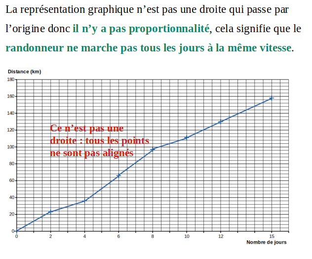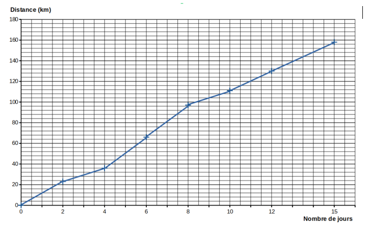 La représentation graphique suivante fournit la distance parcourue par randonneur en montagne en fonction du nombre de jours de marche.