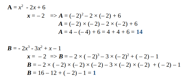 Calcule A et B pour x = - 2.