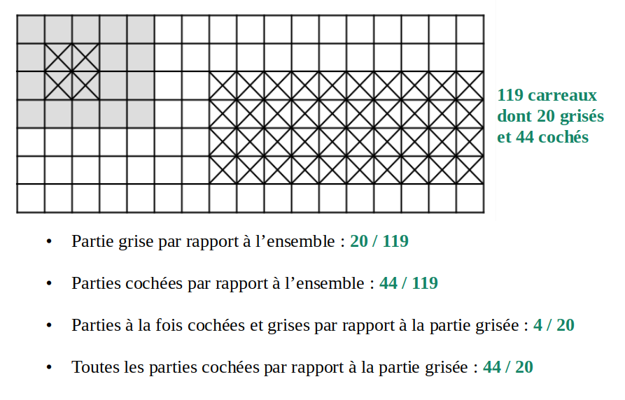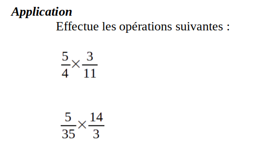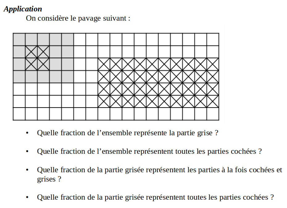 - Exemple : J'ai mangé les trois quarts de la moitié d'une tarte, quelle part de la tarte ai-je mangé ?