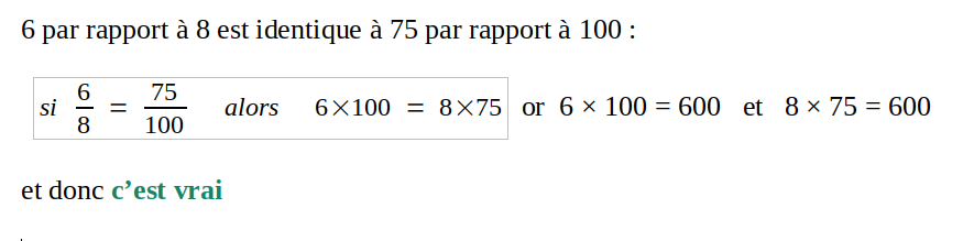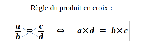 Si deux fractions sont égales alors le produit du numérateur de la première et du dénominateur de la seconde est égal au produit du numérateur de la seconde et du dénominateur de la première