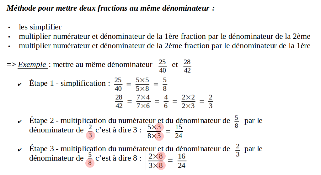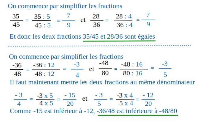 on peut, pour cela, simplifier les fractions quand c'est possible :