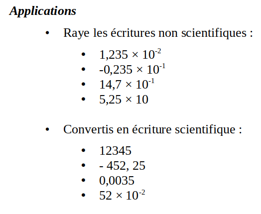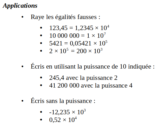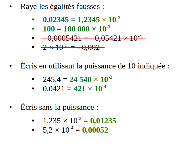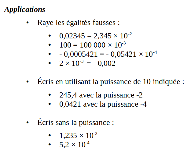 - Les puissances négatives de 10 :