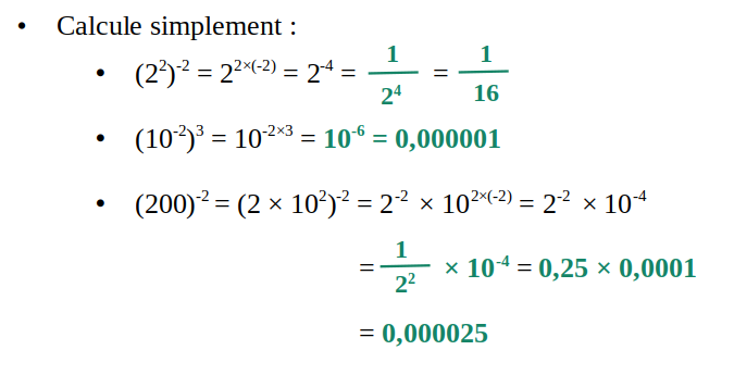 On vérifie : (-2)-4 = 0,0625 et 0,06252 = 0,00390625