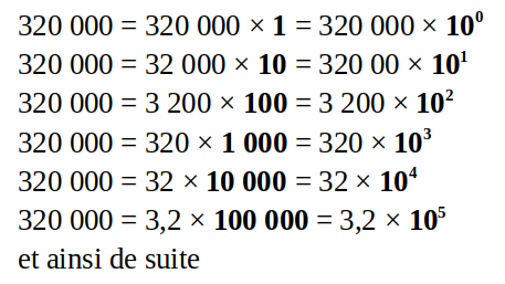 Quelques écritures possibles de 320 000 en utilisant les puissances positives de 10 :