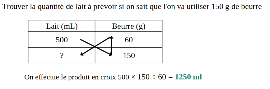 Dans un tableau de proportionnalité, pour remplir une cellule