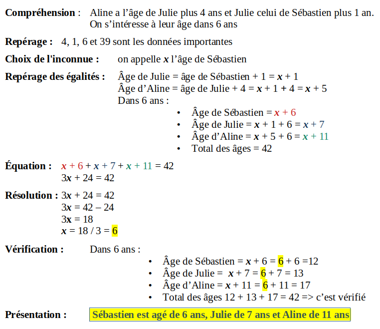 Dans 6 ans, les trois enfants auront au total 42 ans.
