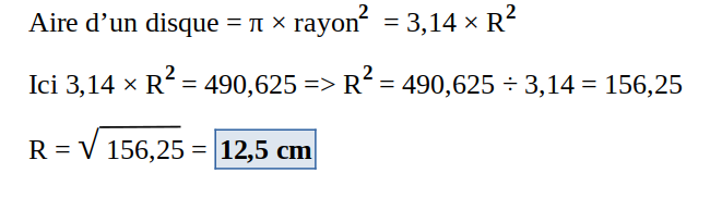 Quel est le rayon d'un disque dont l'aire est égale à