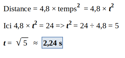 d = 4,8 t2 où t est le temps en seconde.