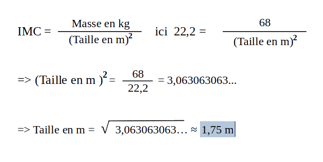 Il a trouvé 22,2 alors qu’il pèse 68 kg. Quelle est sa taille ?