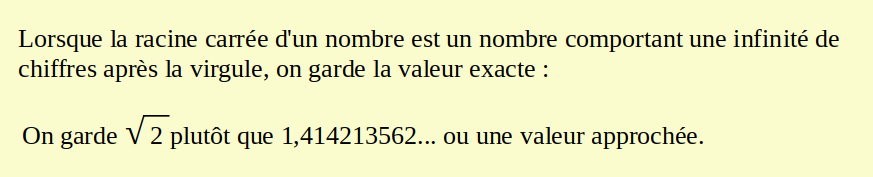 - La racine carrée de 2 est égale à 1,414213562... c'est un nombre irrationnel,