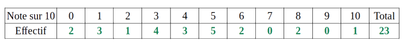 Quelle est la note moyenne des élèves de cette classe ?