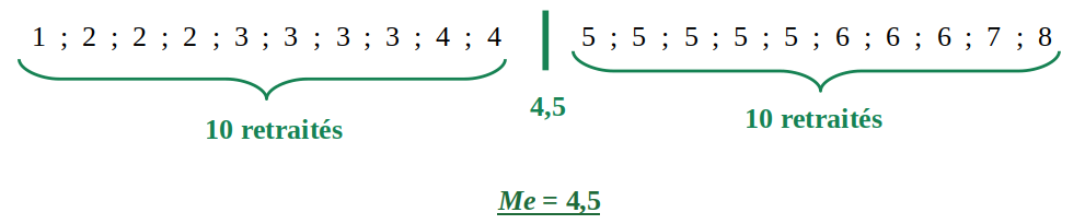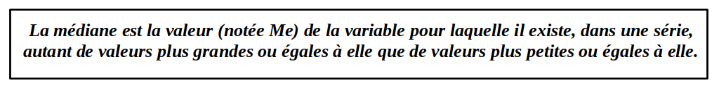 Remarque : la médiane n'est pas forcément égale à une des valeurs de la variable.