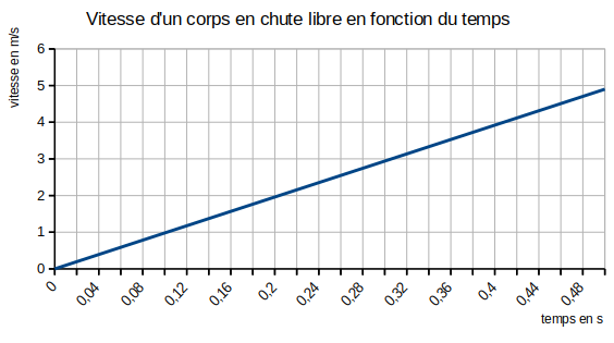 Le tracé suivant représente la vitesse atteinte par un corps en chute libre en fonction du temps.