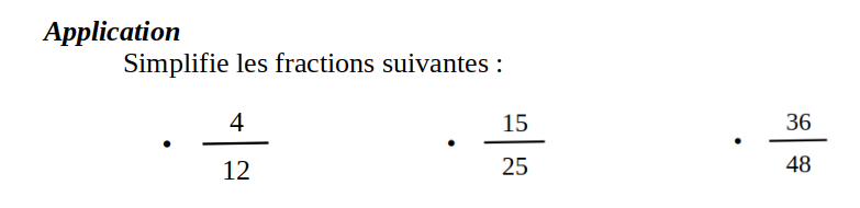 on peut, pour cela, simplifier les fractions quand c'est possible :