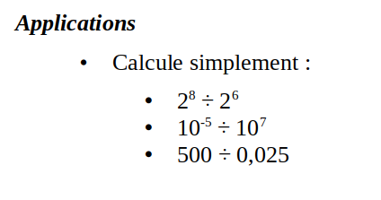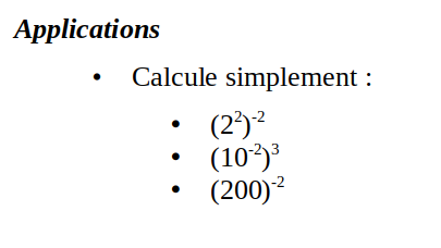 Un nombre A (différent de zéro) élevé à une puissance négative -n est égal au quotient de 1 par A élevé à la puissance +n